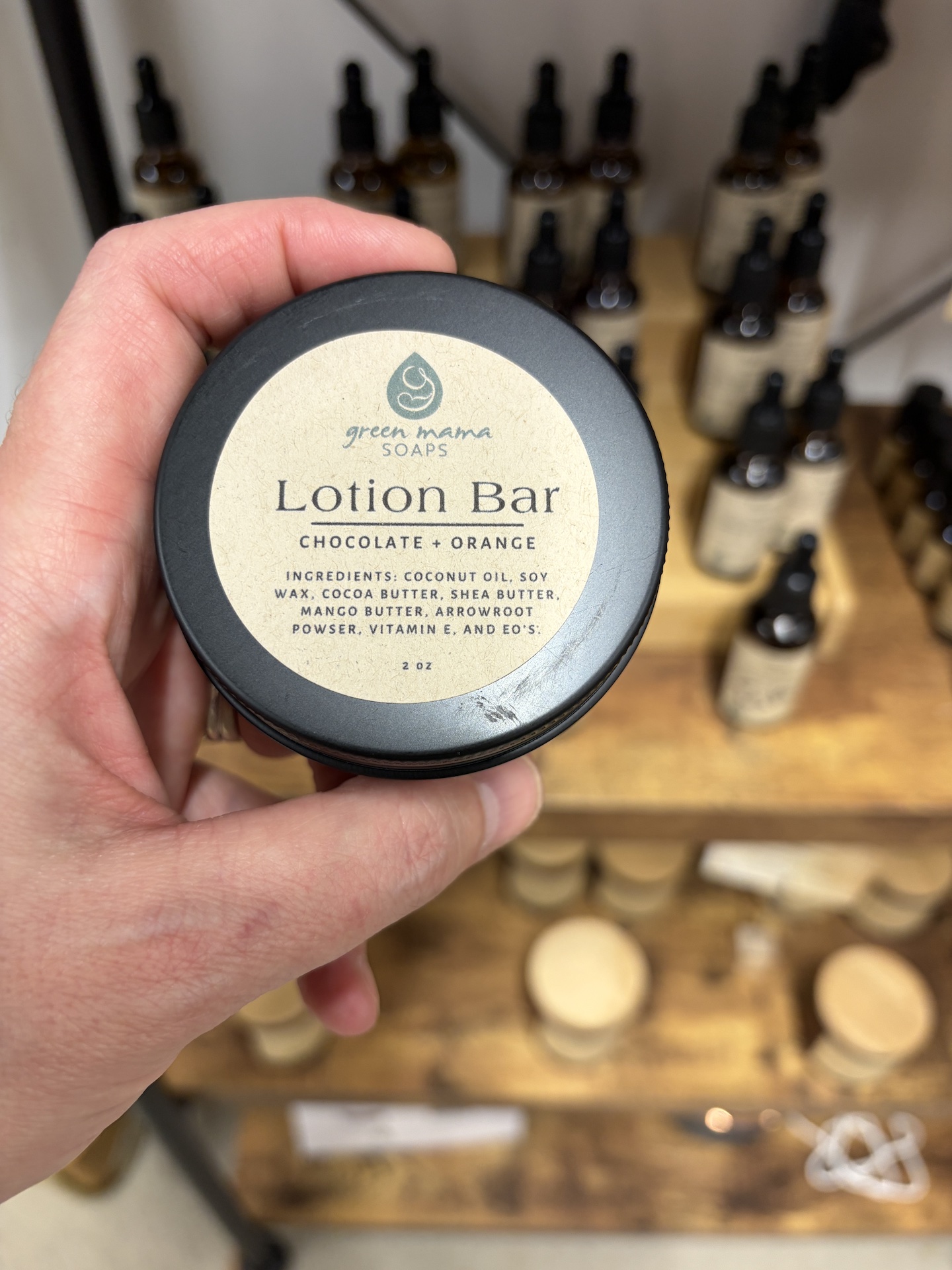Decadent, cozy, and just a little indulgent, the Chocolate & Orange Vegan Lotion Bar is a rich blend of plant butters paired with bright sweet orange essential oil. The result is a bar that feels comforting and luxurious without being heavy — like a warm treat for your skin.