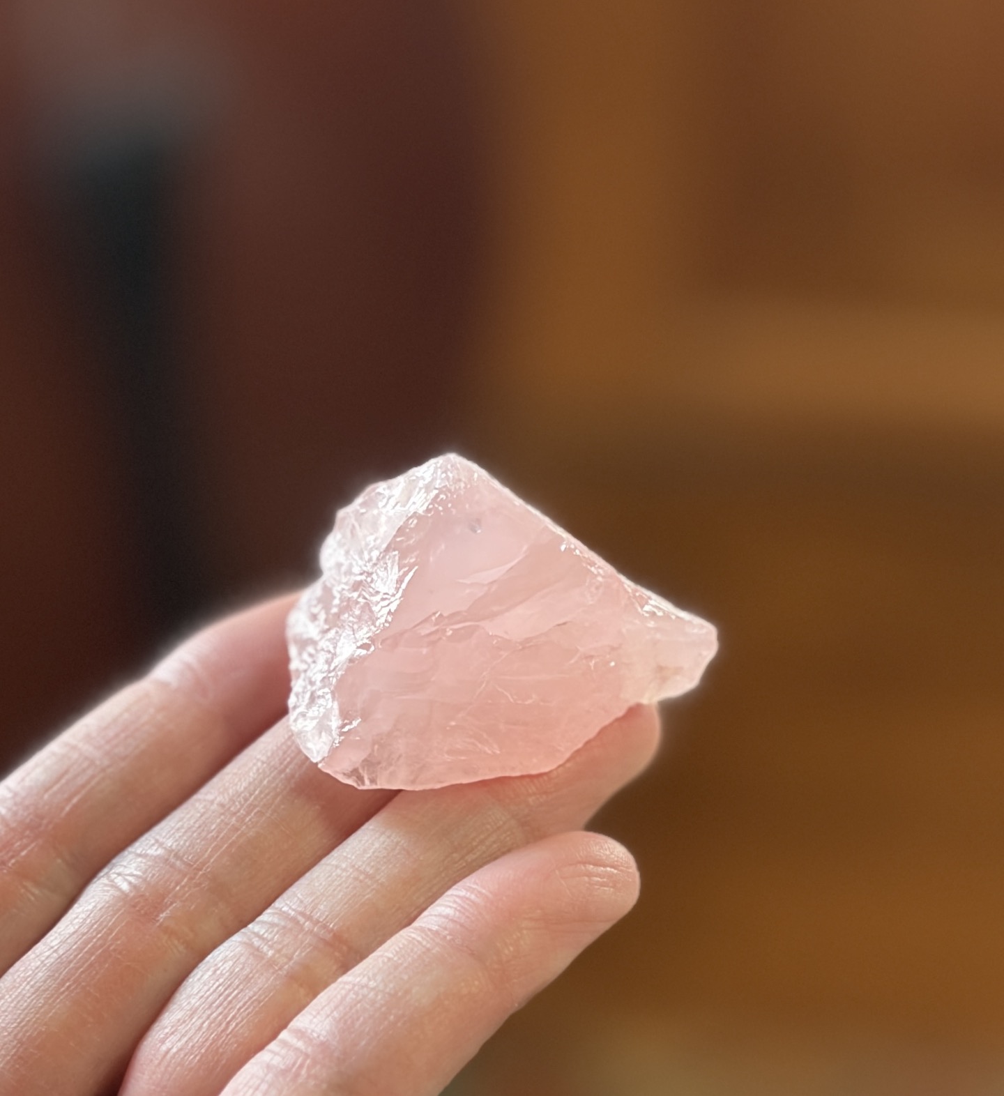 Many people keep raw rose quartz nearby as a reminder to slow down, practice self-kindness, or cultivate peaceful connections. It’s commonly placed on nightstands, altars, desks, or included in personal rituals focused on intention-setting or reflection.