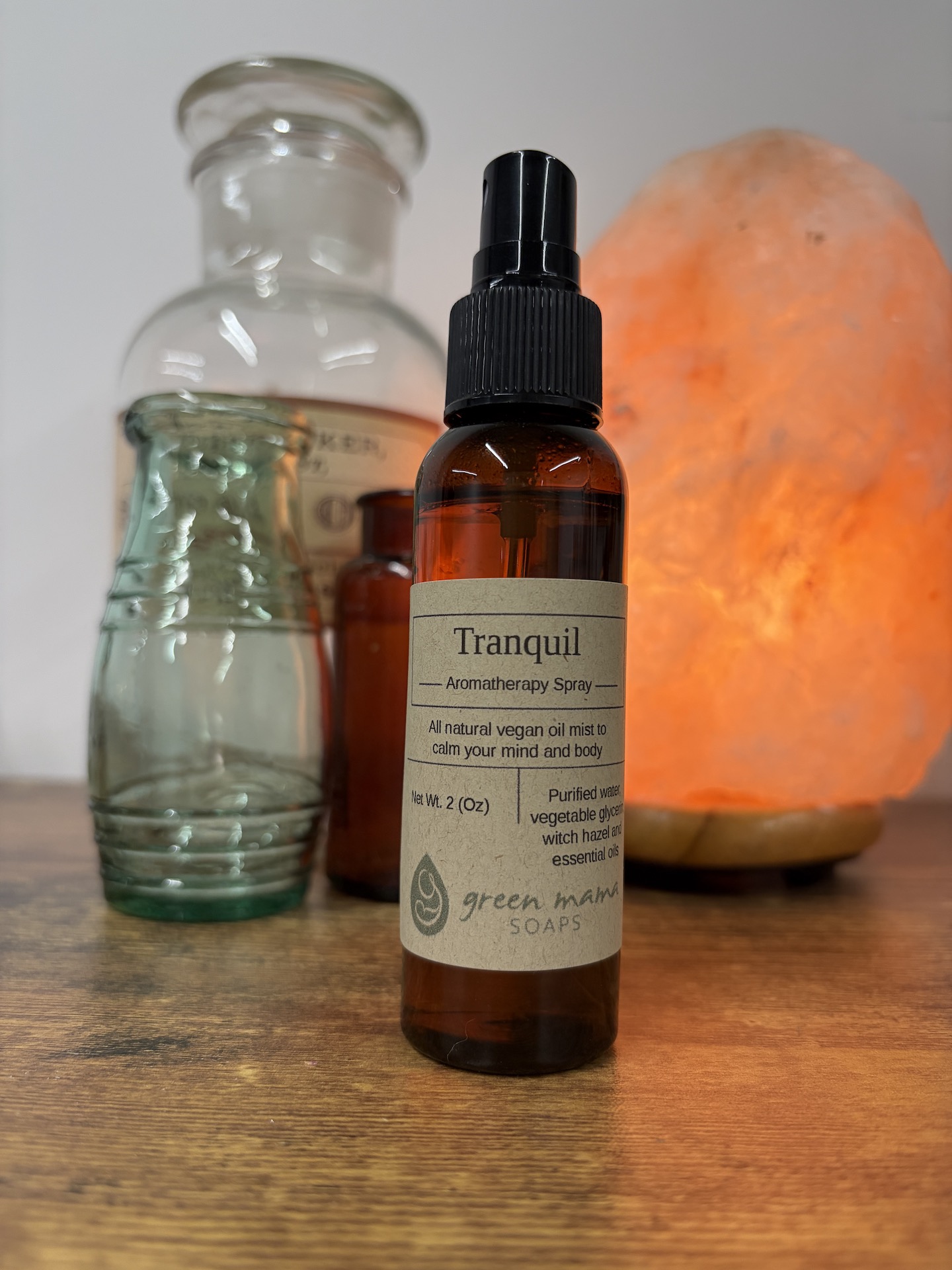 Our Tranquil Aromatherapy Spray Mist is a soothing blend of pure lavender, frankincense, and clary sage essential oils, crafted to help you unwind naturally. Free from artificial fragrances, parabens, and harmful chemicals, this gentle mist brings the calming essence of nature into your everyday routine. Every bottle is handmade in small batches to preserve purity and effectiveness.